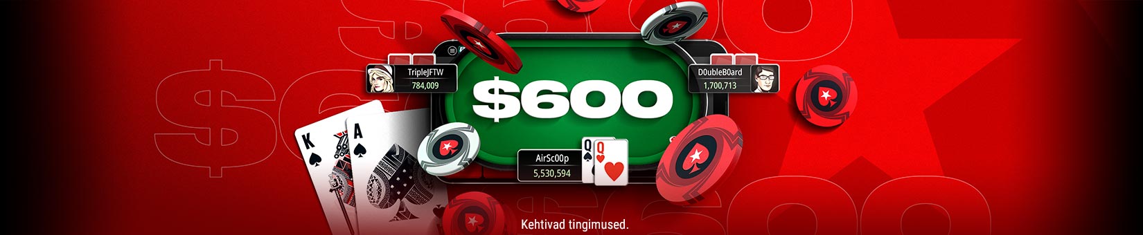 Liitu taas laudadega ja osale meistrivõistlustel eksklusiivse 100% deposiidiboonusega kuni 600 dollarit.