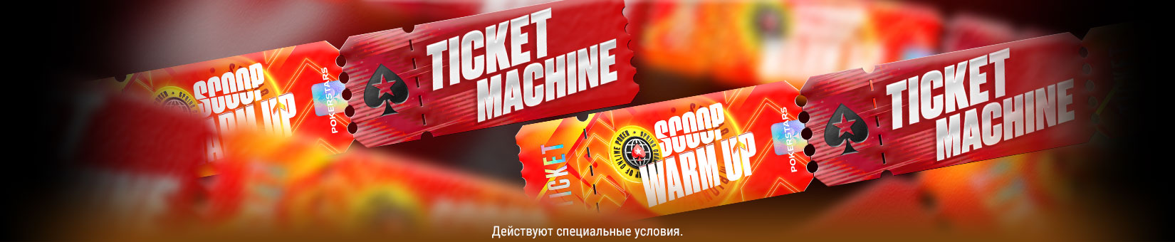 Приготовьтесь получить билет на Главное Событие SCOOP Warm Up с бай-ином $109! Поднимитесь на новый уровень игры в турнирах SCOOP Warm Up, выполняйте ежедневные задания и получайте до 3 билетов на ежедневные розыгрыши призов акции "Билетный автомат".